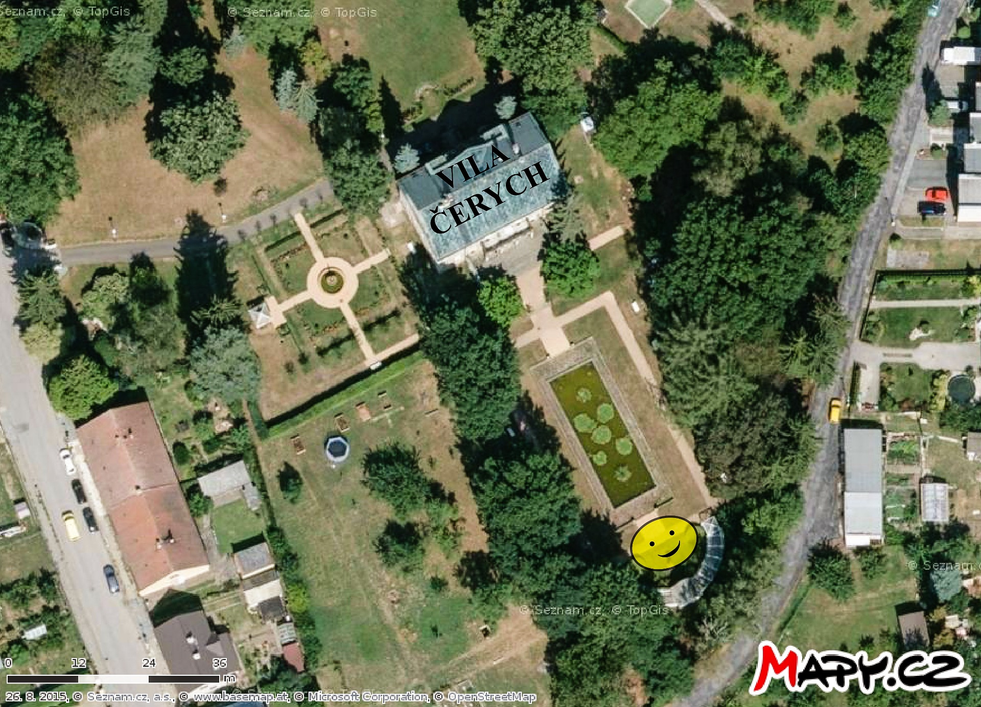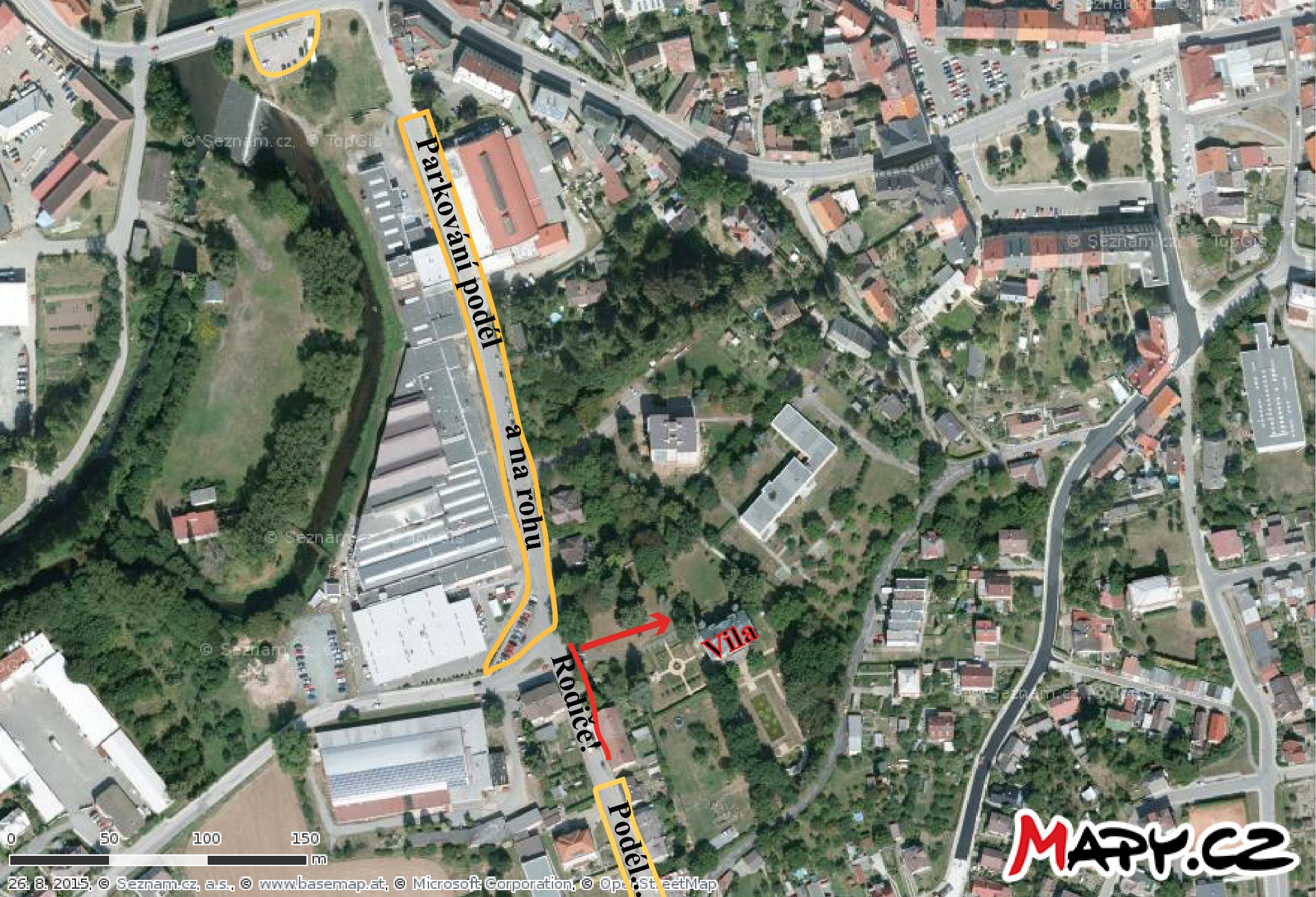 Parkování: v ulici před vilou Čerych, viz obrázek, POZOR na zákazy zastavení / stání! Nenechávejte tam auta, objíždí to tam městská policie svatba nesvatba :)